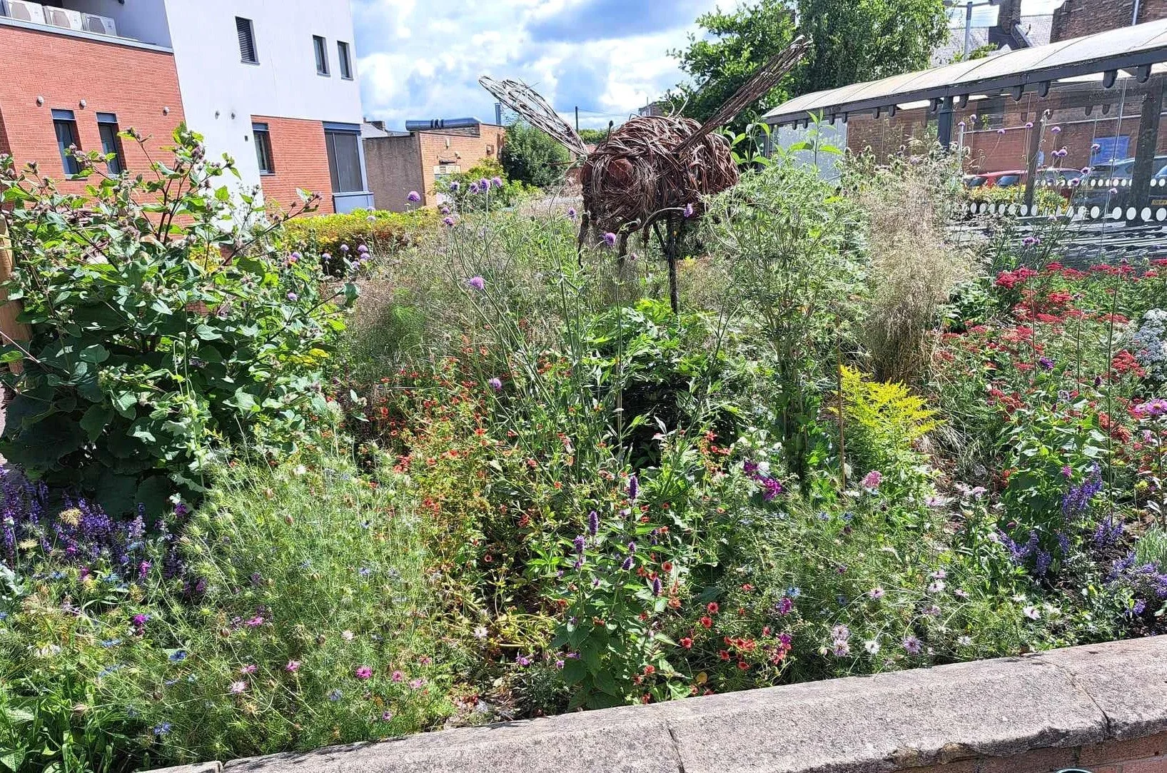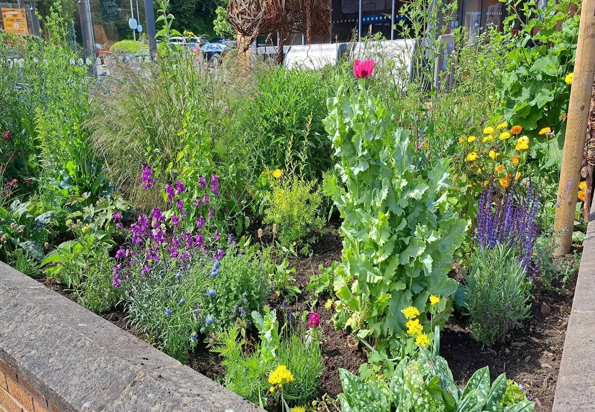 The Bee Bed outside the entrance to the Co-op has become a much-loved and valued raised planter since being re-planted in 2024. With a focus on plants for pollinators that benefit a range of insects and wildlife while also providing colour and interest throughout the year, the Bee Bed is a lovely place for people of all ages to sit a while and take in the scents, colours and sounds.