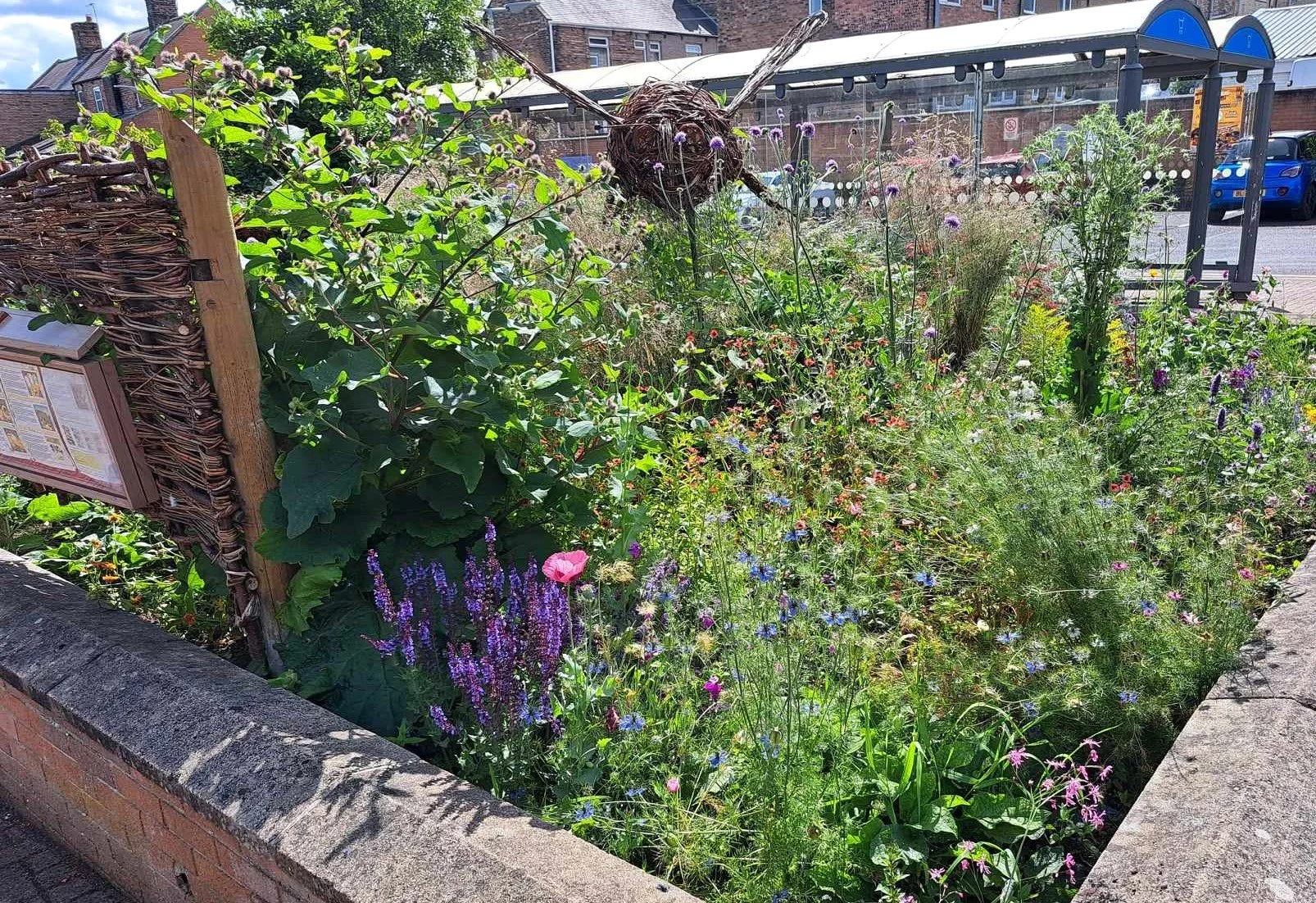 Spring 2026 will see Prudhoe Space for Nature extending this, and taking on the adjacent raised planter, beside the ATM machine, to provide a much more colourful and scented variety of plants, attractive for us, pollinators and other wildlife. This bed will have a Ladybird sculpture and planting that will be beneficial to and encourage ladybirds, and will be called the Ladybird Bed!