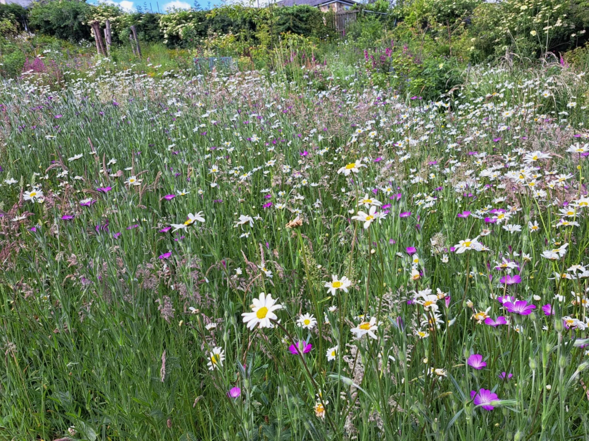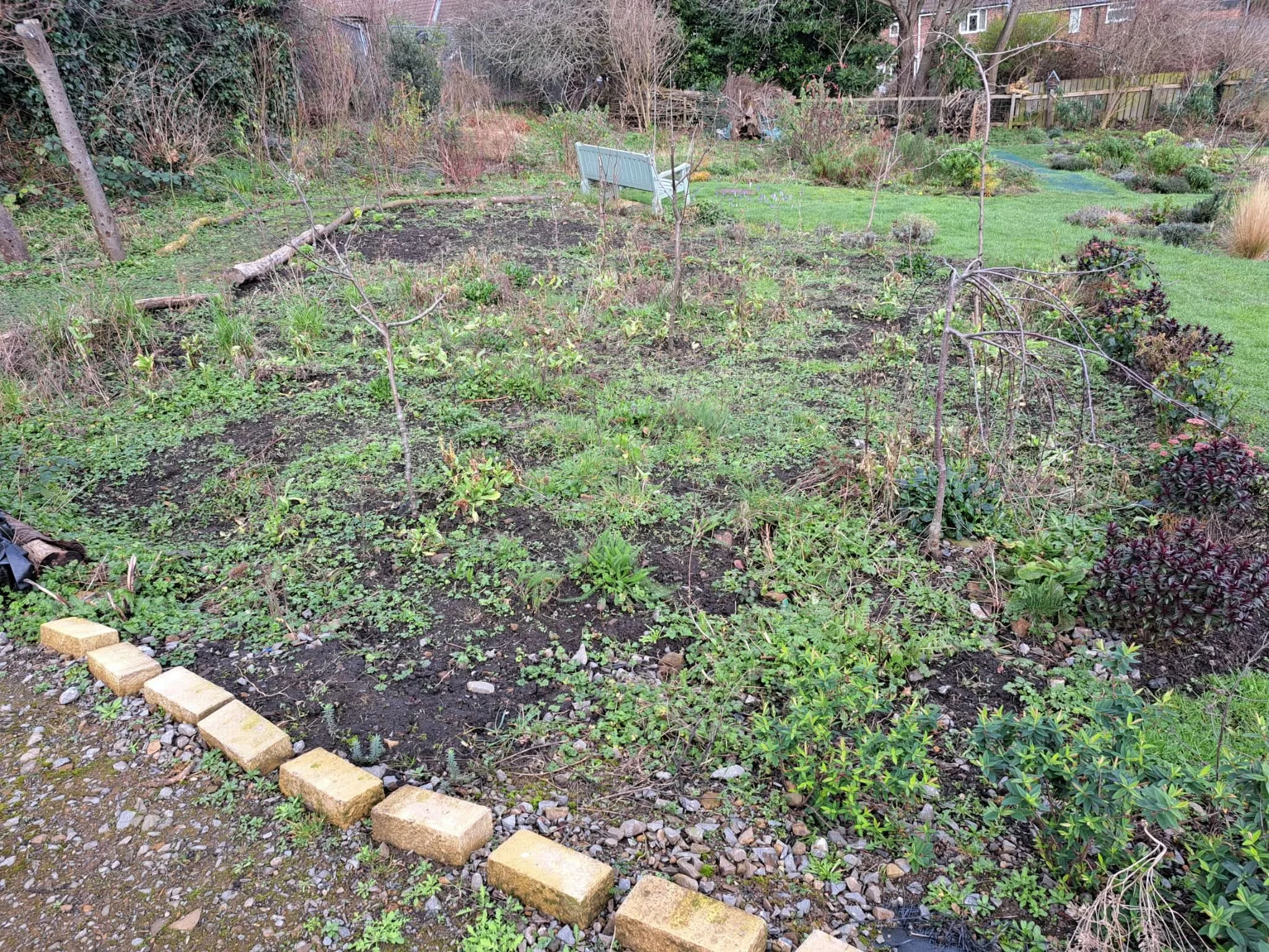 (The garden supports all stages in the lifecycles of invertebrates (bees, butterflies, hoverflies etc) and so we are happy to have areas for nettles, brambles, sorrels etc)